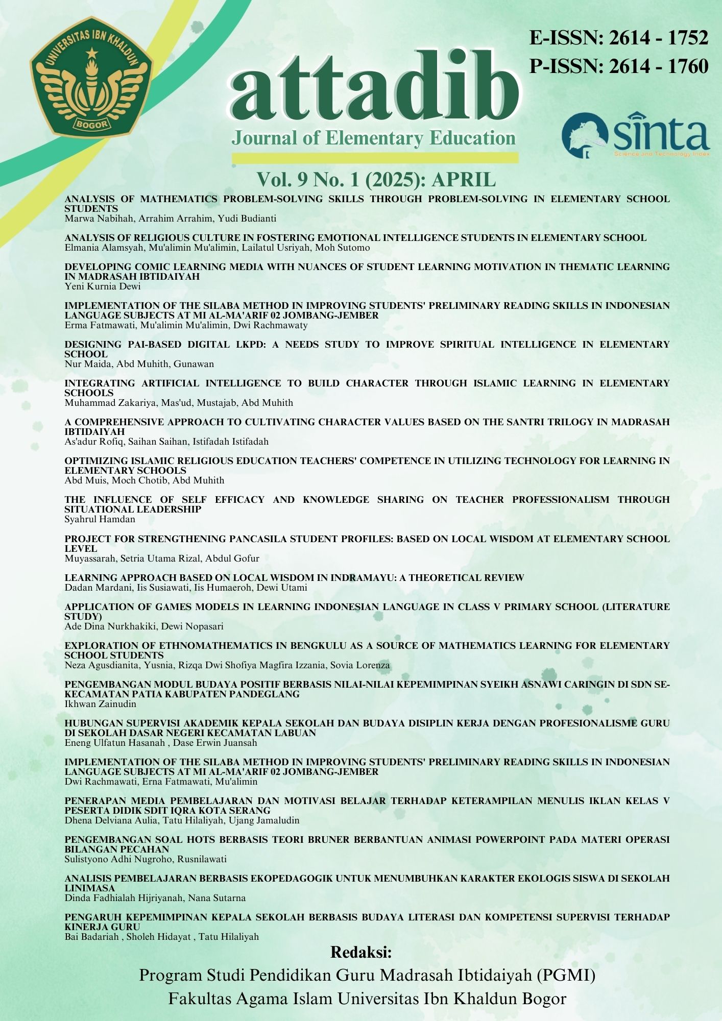 Vol. 8 No. 1 (2024)This issue has been available online since 25 April 2024 for the regular issue of April 2024. All Articles in this issue were authored/co-authored by 65 Authors from nine Universities (Universitas Sarjanawiyata Tamansiswa, Universitas Pendidikan Indonesia, Universitas Muhammadiyah Surakarta, Universitas Islam Negeri Sunan Gunung Djati Bandung, Universitas Islam Negeri Kiai Haji Achmad Siddiq Jember, Universitas Indonesia Negeri Sunan Kalijaga, Universitas Indonesia, Universitas Bengkulu, STKIP Muhammadiyah Kuningan).